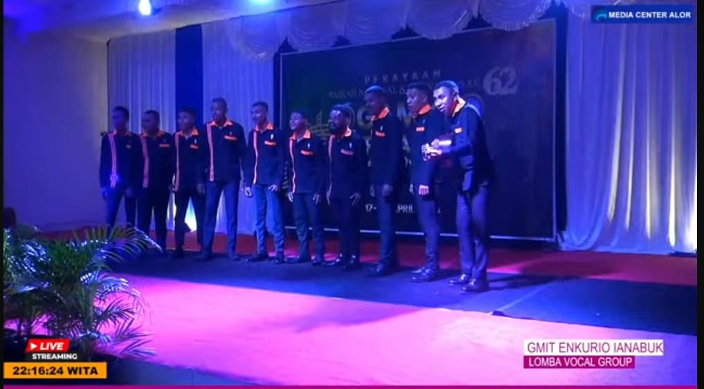 Kalabahi, 20 April 2024 – Vokal Group Pemuda GMIT Enkurio Ianabuk kembali tampil memukau dalam sebuah acara Perlombaan perayaan Paskah Nasional dan Dies Natalis ke 62 GAMKI Alor.
